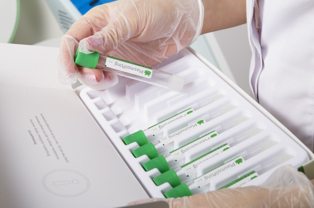 - Виділення плазми у центрифузі. Пробірку з кров’ю поміщають у спеціальну центрифугу, де вона обертається на високих швидкостях. Це дозволяє розділити кров на фракції, тобто відокремити еритроцити та лейкоцити й отримати чисту плазму, збагачену тромбоцитами.